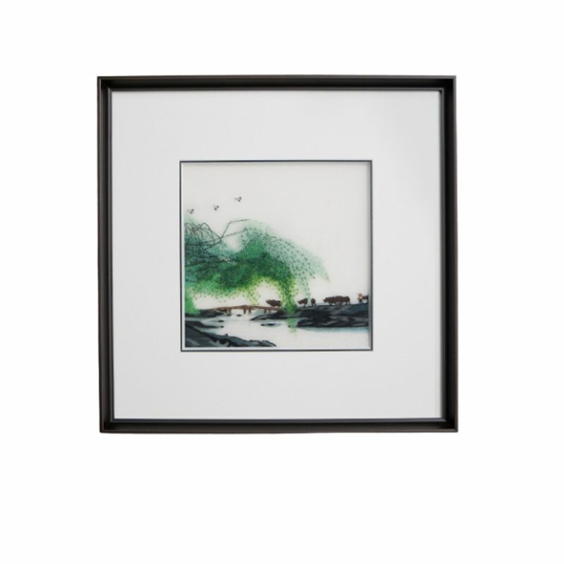 垂柳水牛风景苏绣画